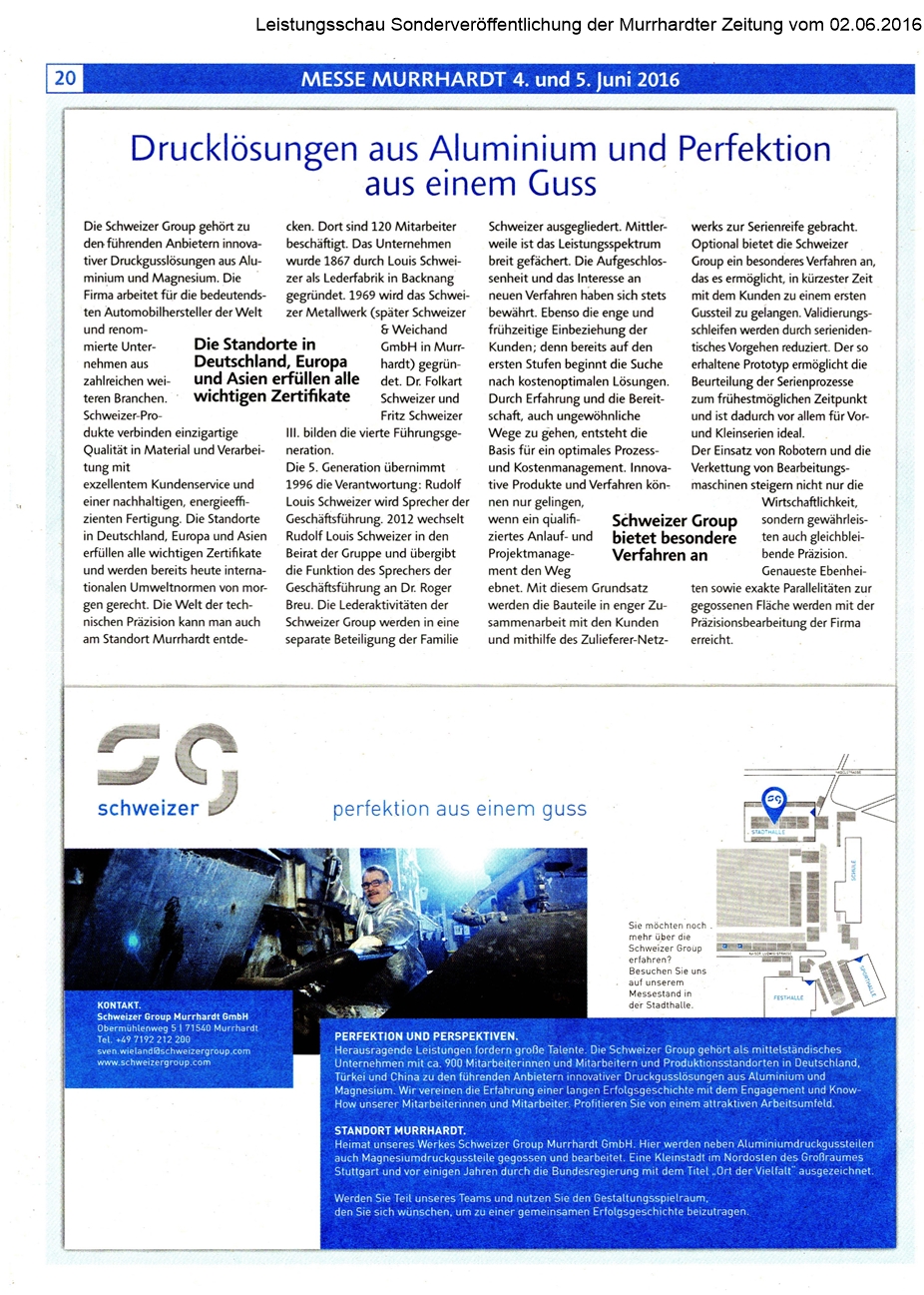 02. Juni 2016 - Leistungsschau 2016 - Schweizer Group - Drucklösungen aus Aluminium und Perfektion aus einem Guss