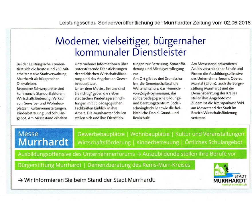 02. Juni 2016 - Leistungsschau 2016 - Stadt Murrhardt - Moderner, vielseitiger, bürgernaher kommunaler Dienstleister
