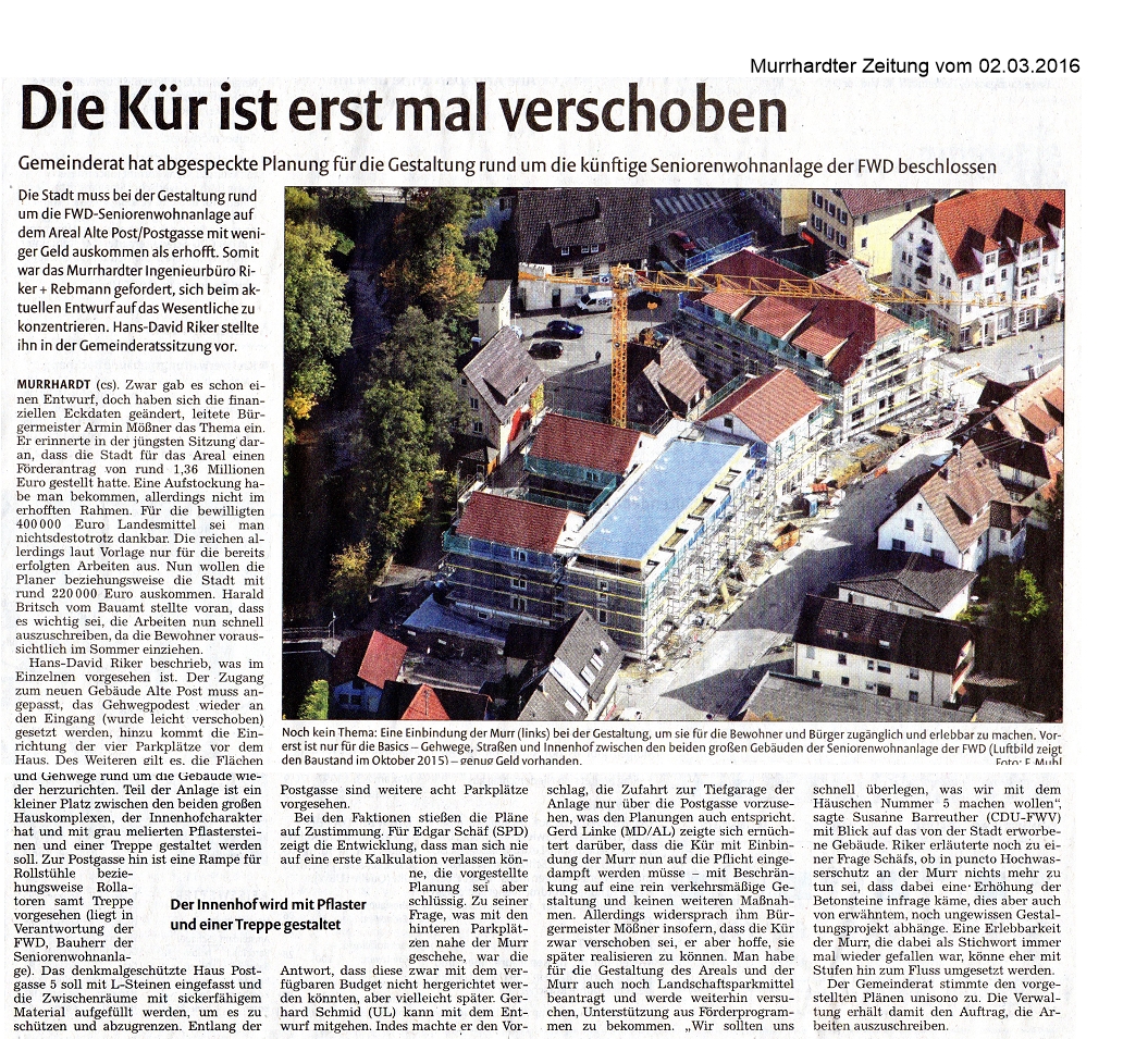 02. März 2016 - Murrhardter Zeitung - Stadt Murrhardt/Riker+Rebmann - Die Kür ist erst mal verschoben