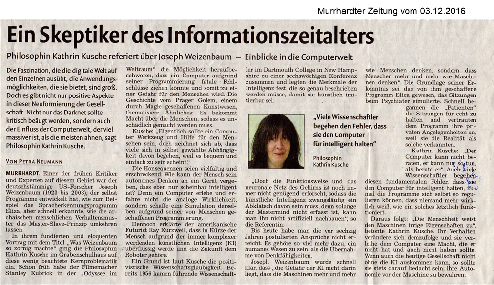 03. Dezember 2016 - Murrhardter Zeitung - VHS - Ein Skeptiker des Informationszeitalters
