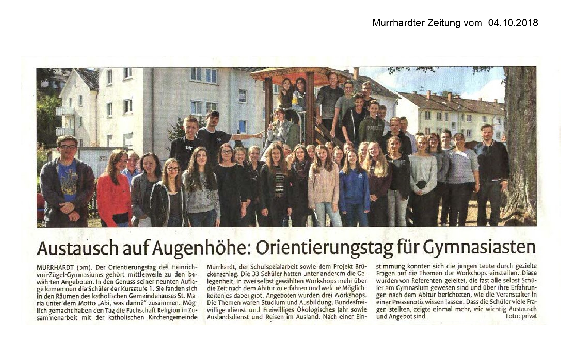 04. Oktober 2018 - Murrhardter Zeitung - HvZG - Austausch auf Augenhöhe: Orientierungstag für Gymnasiasten