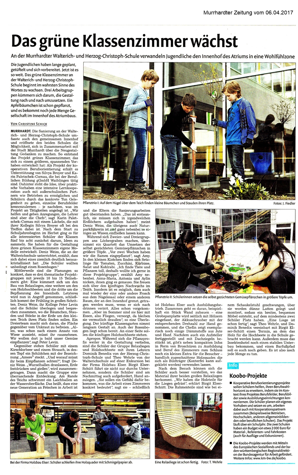 06. April 2017 - Murrhardter Zeitung - Walterichschule - Das grüne Klassenzimmer wächst