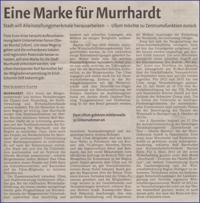 06. Juni 2012 - Murrhardter Zeitung - Eine Marke für Murrhardt