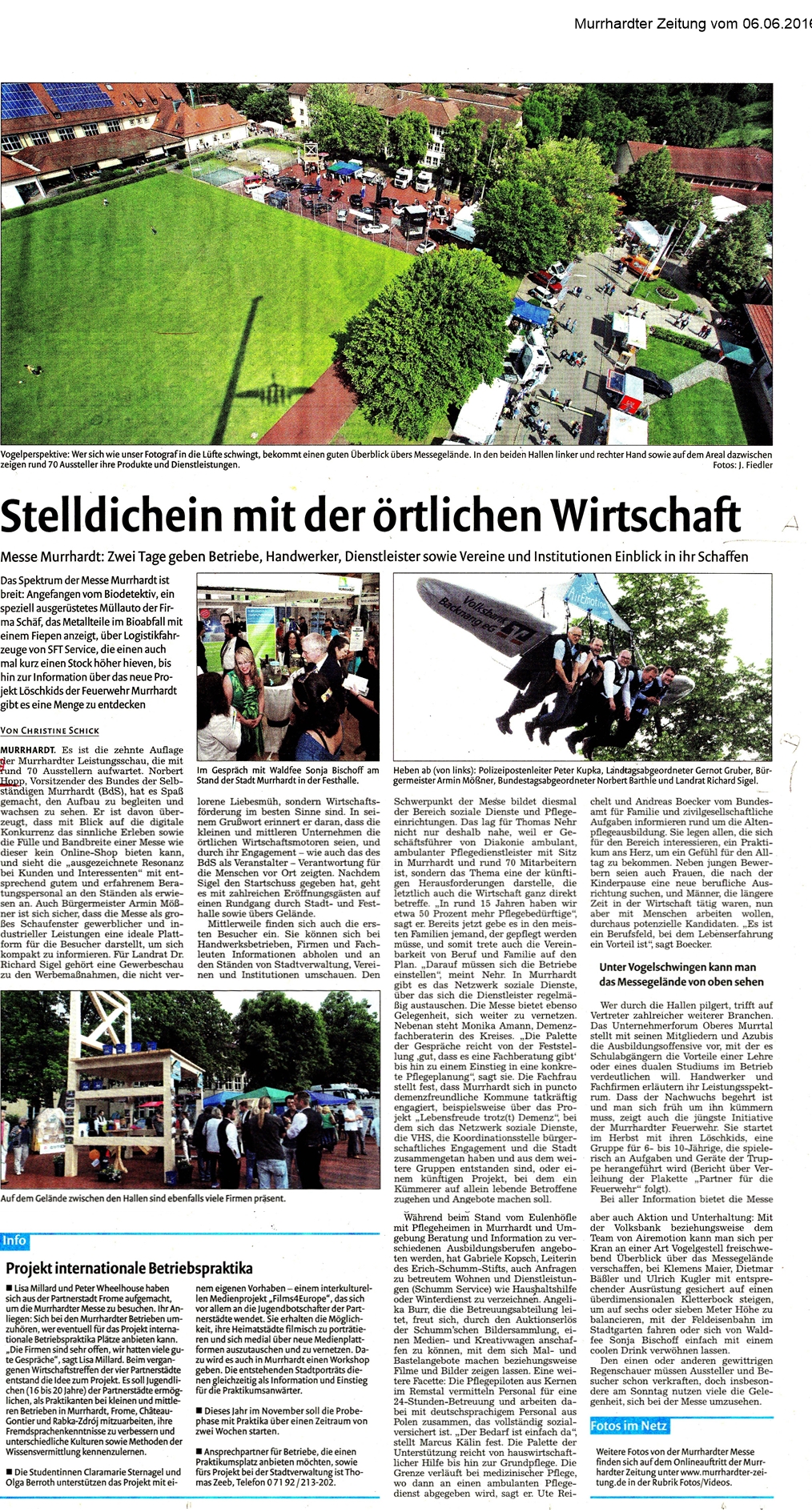 06. Juni 2016 - Murrhardter Zeitung - UFOM - BDS - Stelldichein mit der örtlichen Wirtschaft
