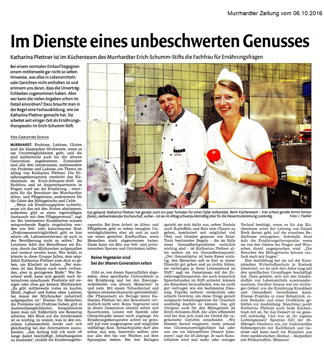 06. Oktober 2016 - Murrhardter Zeitung - Erich Schumm Stiftung - Im Dienste eines unbeschwerten Genusses
