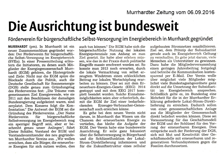 06. September 2016 - Murrhardter Zeitung - EGM - Die Ausrichtung ist bundesweit