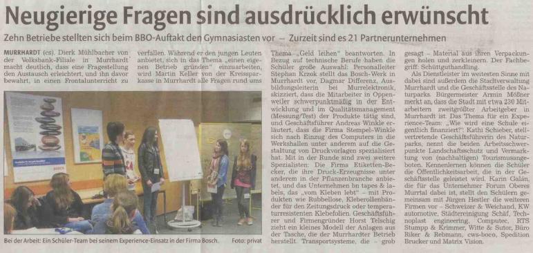 09. September 2014 - Murrhardter Zeitung - Neugierige Fragen sind ausdrücklich erwünscht