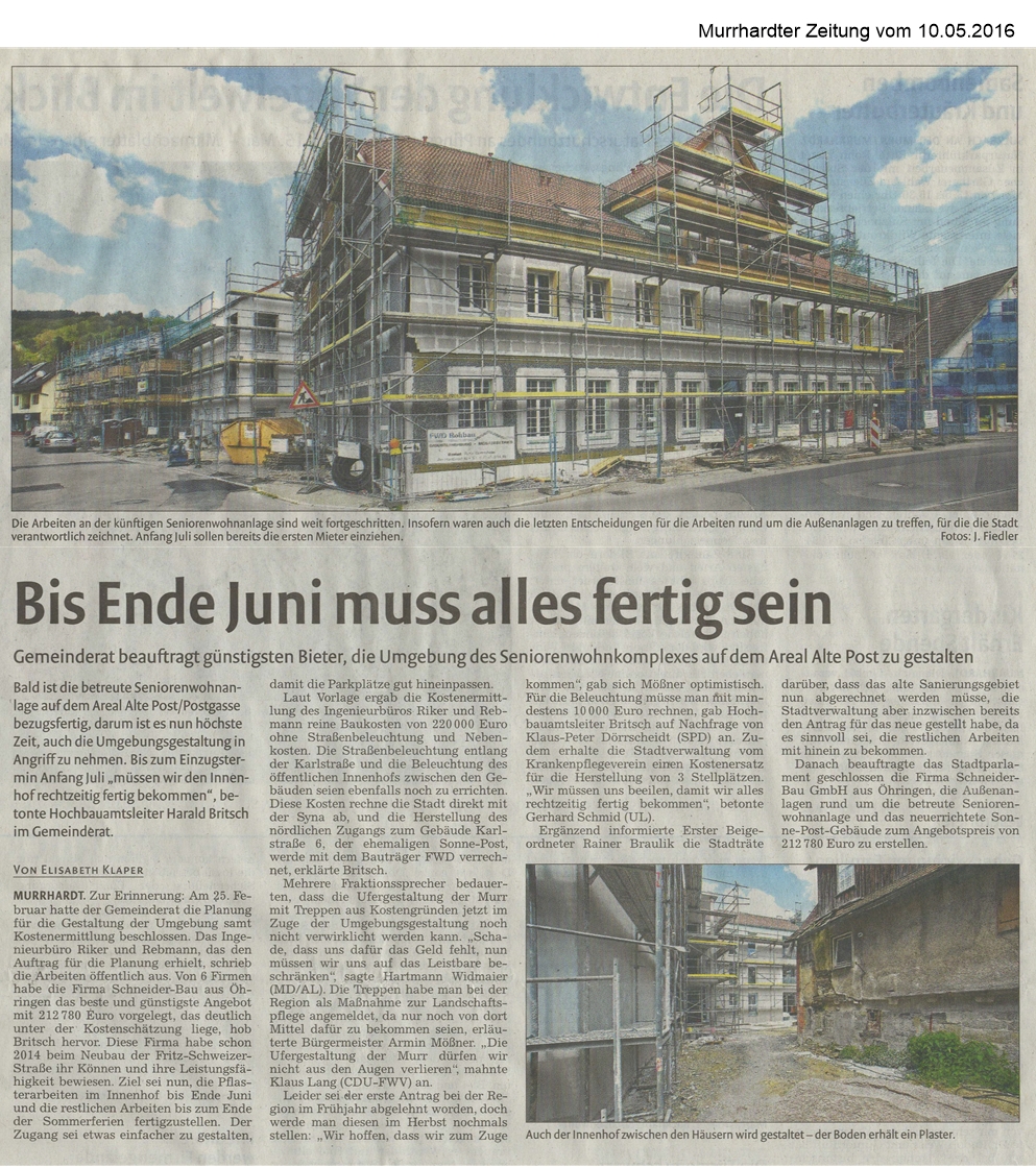 10. Mai 2016 - Murrhardter Zeitung - Riker+Rebmann - Bis Ende Juni muss alles fertig sein