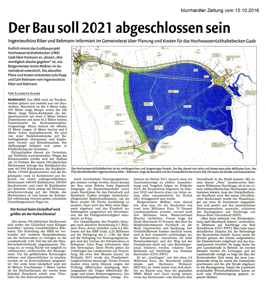10. Oktober 2016 - Murrhardter Zeitung - Riker+Rebmann - Der Bau soll 2021 abgeschlossen sein
