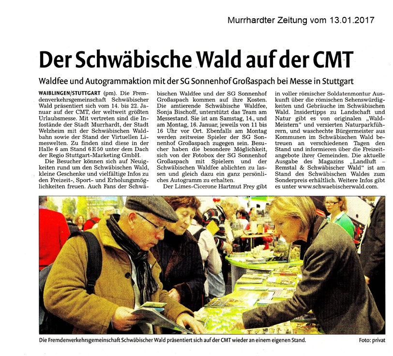 13. Januar 2017 - Murrhardter Zeitung - Schwäbischer Wald - Der Schwäbische Wald auf der CMT