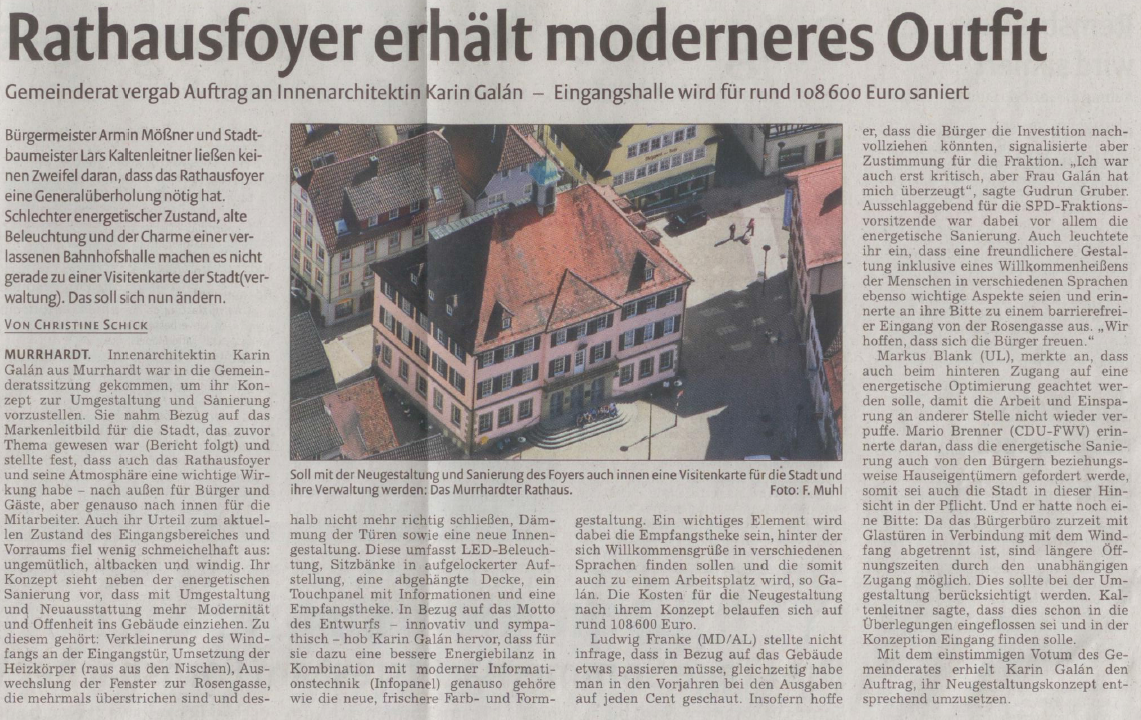 13. Juli 2013 - Murrhardter Zeitung - Rathausfoyer erhält modernes Outfit