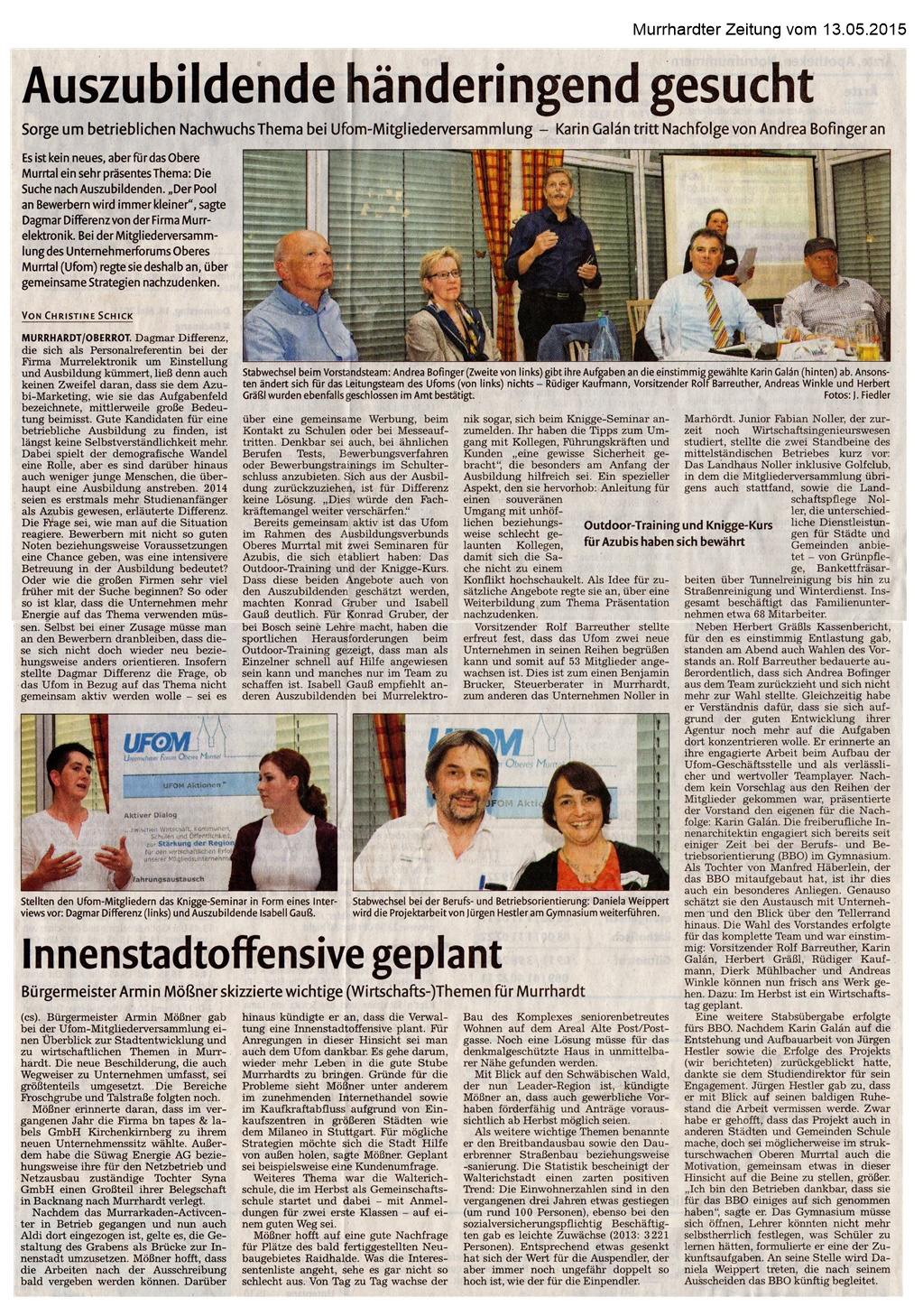 13. Mai 2015 - Murrhardter Zeitung - UFOM Mitgliederversammlung