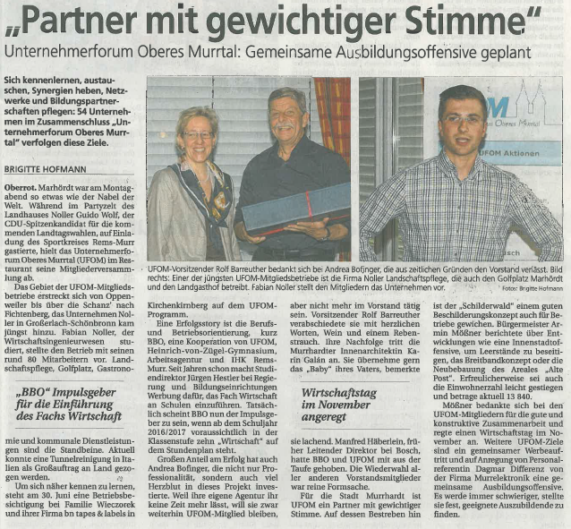 15. Mai 2015 - Gaildorfer Rundschau - UFOM Mitgliederversammlung