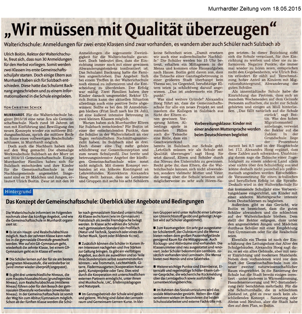 18. Mai 2015 - Murrhardter Zeitung - Wir müssen mit Qualität überzeugen