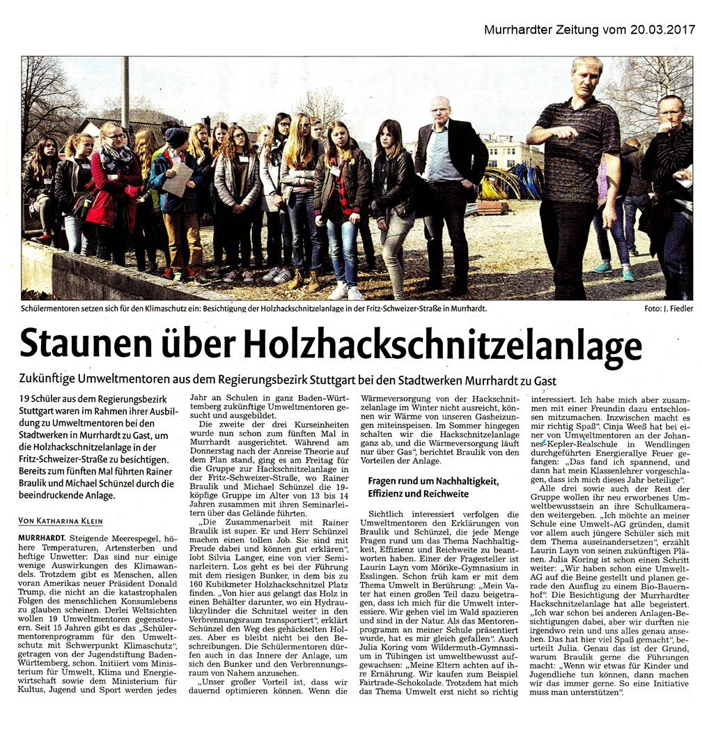 20. März 2017 - Murrhardter Zeitung - Stadt Murrhardt - Staunen über Holzhachschnitzelanlage