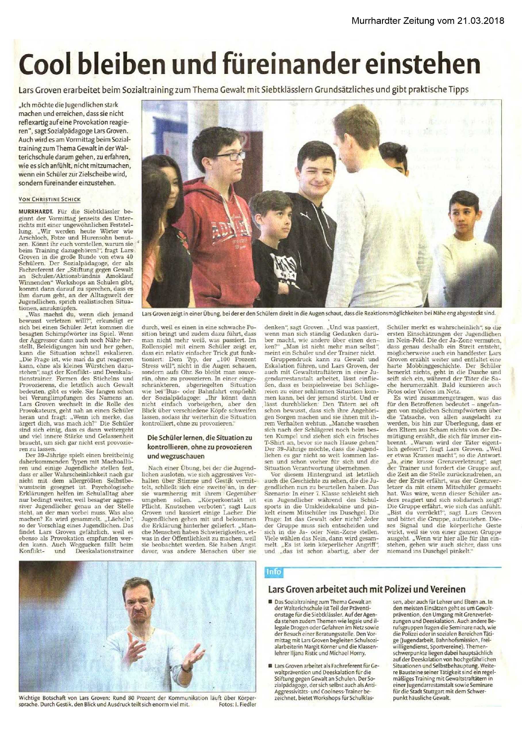 21. März 2018 - Murrhardter Zeitung - Walterichschule- Cool bleiben und füreinander einstehen