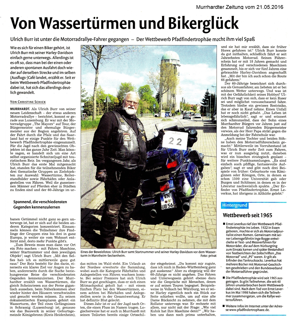 21. Mai 2016 - Murrhardter Zeitung - RA Burr - Von Wassertürmen und Bikerglück