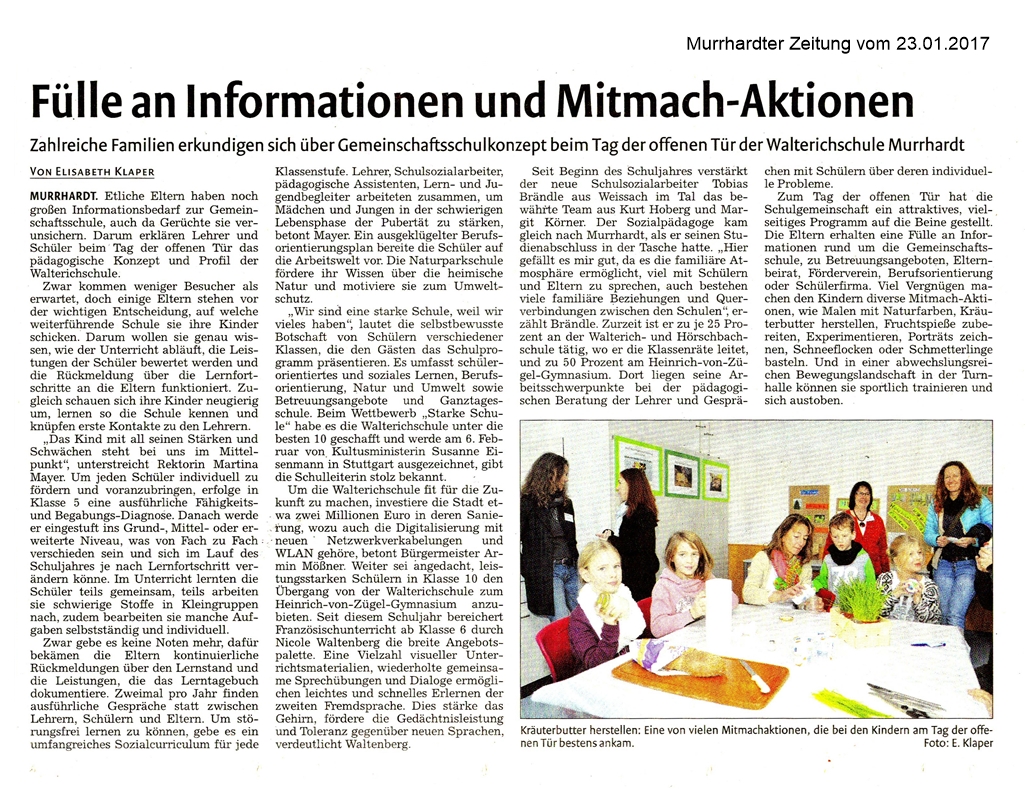 23. Januar 2017 - Murrhardter Zeitung - Walterichschule - Fülle an Informationen und Mitmach-Aktionen