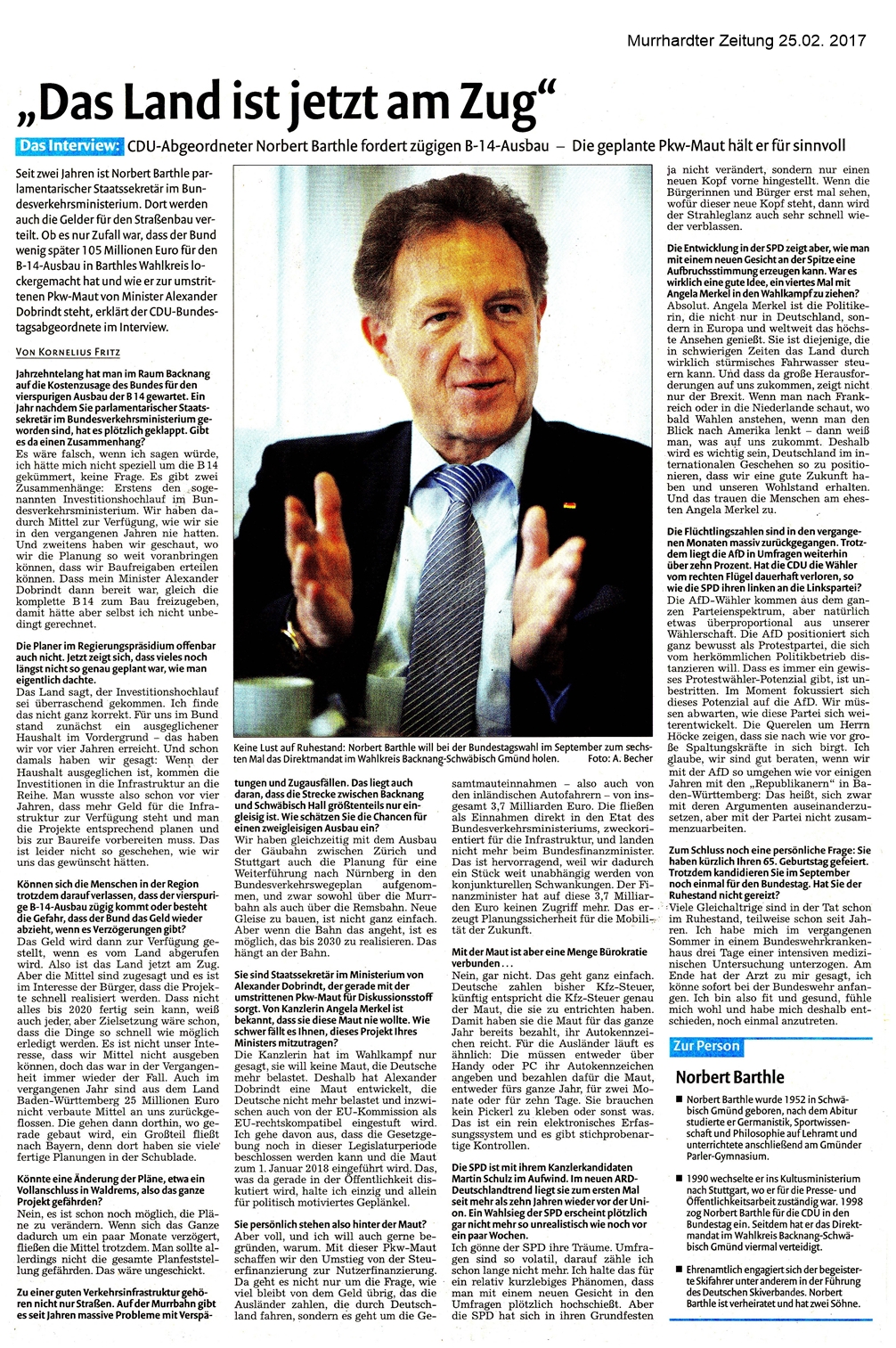 25. Februar 2017 - Murrhardter Zeitung - B-14 - "Das Land ist jetzt am Zug"