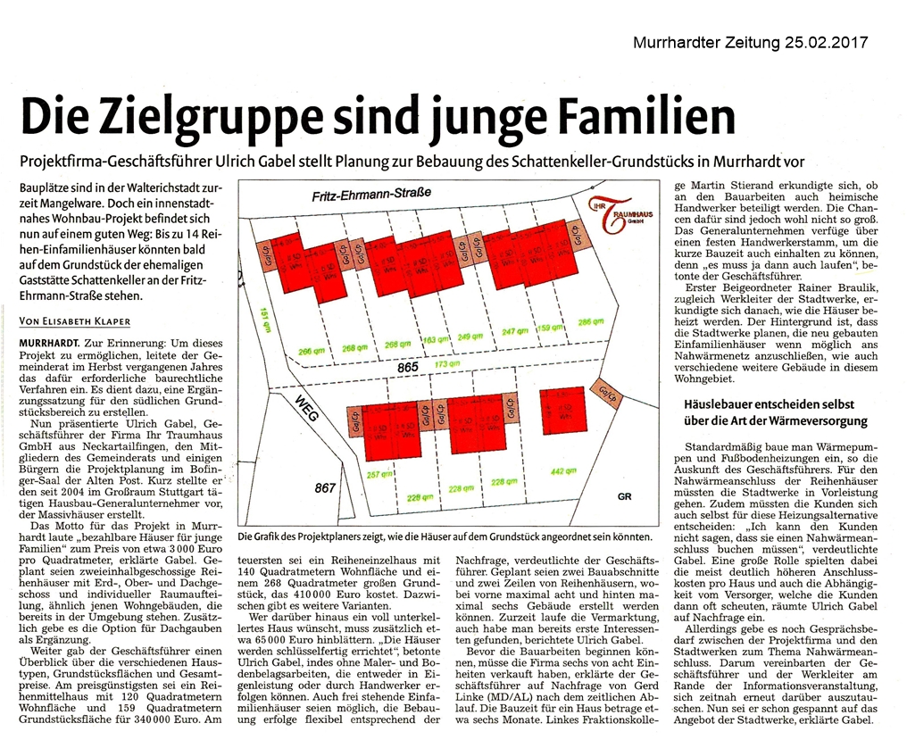 25. Februar 2017 - Murrhardter Zeitung - Stadt Murrhardt - Die Zielgruppe sind junge Familien