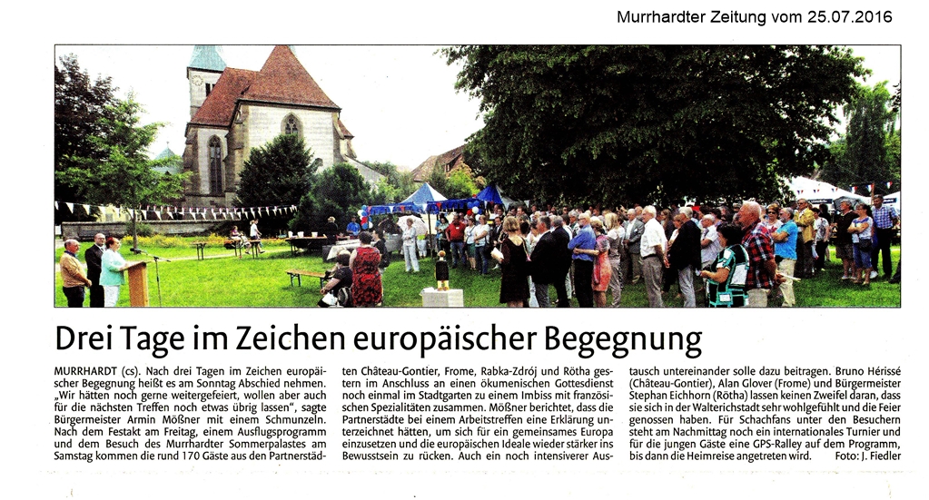 25. Juli 2016 - Murrhardter Zeitung - Stadt Murrhardt - Drei Tage im Zeichen europäischer Begegnung