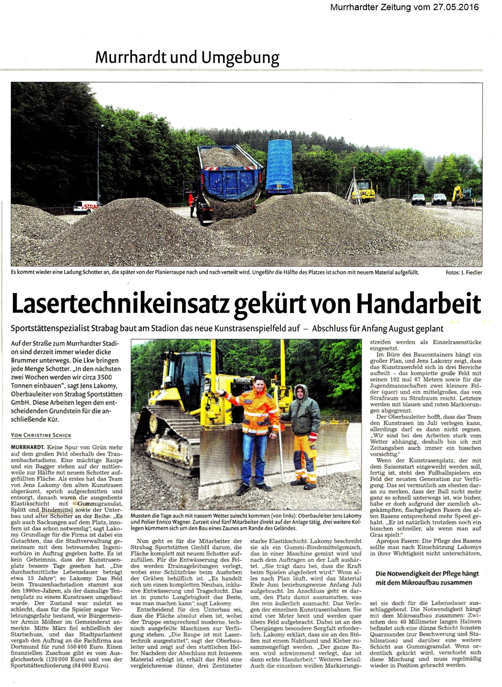 27. Mai 2016 - Murrhardter Zeitung - HvZG - Lasertechnikeinsatz gekürt von Handarbeit