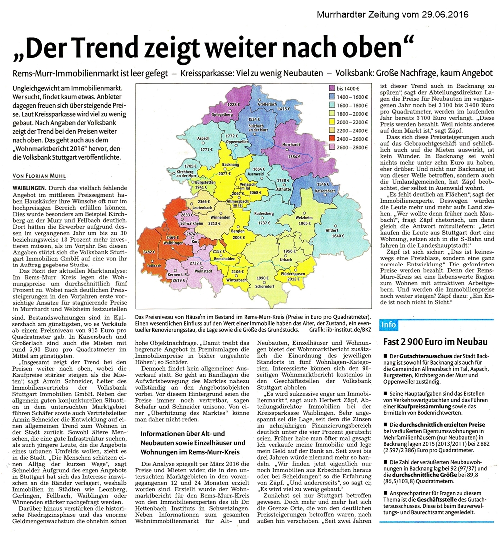 29. Juni 2016 - Murrhardter Zeitung - KSK / Voba - "Der Trend zeigt weiter nach oben"