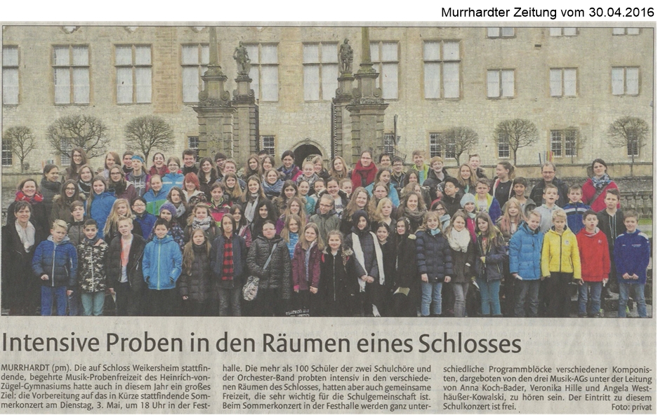 30. April 2016 - Murrhardter Zeitung - HvZG - Intensive Proben in den Räumen eines Schlosses