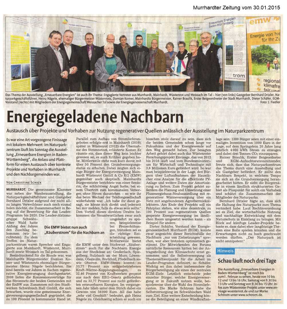 30. Januar 2015 - Murrhardter Zeitung - Energiegeladene Nachbarn