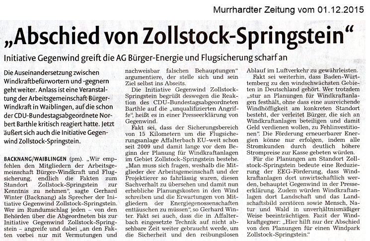01. Dezember 2015 - Murrhardter Zeitung - EGM - "Abschied von Zollstock-Springstein"
