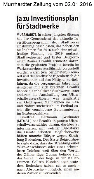 02. Januar 2016 - Murrhardter Zeitung - Stadt Murrhardt - Ja zu Investitionsplan für Stadtwerke