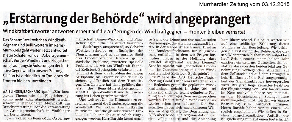 03. Dezember 2015 - Murrhardter Zeitung - EGM - "Erstarrung der Behörde" wird angeprangert