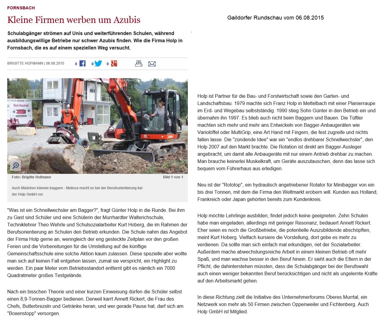 06. August 2015 - Gaildorfer Rundschau - Kleine Firmen werben um Azubis