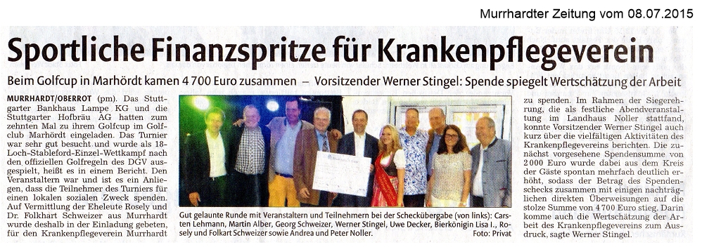 08. Juli 2015 - Murrhardter Zeitung - Sportliche Finanzspritze für Krankenpflegeverein