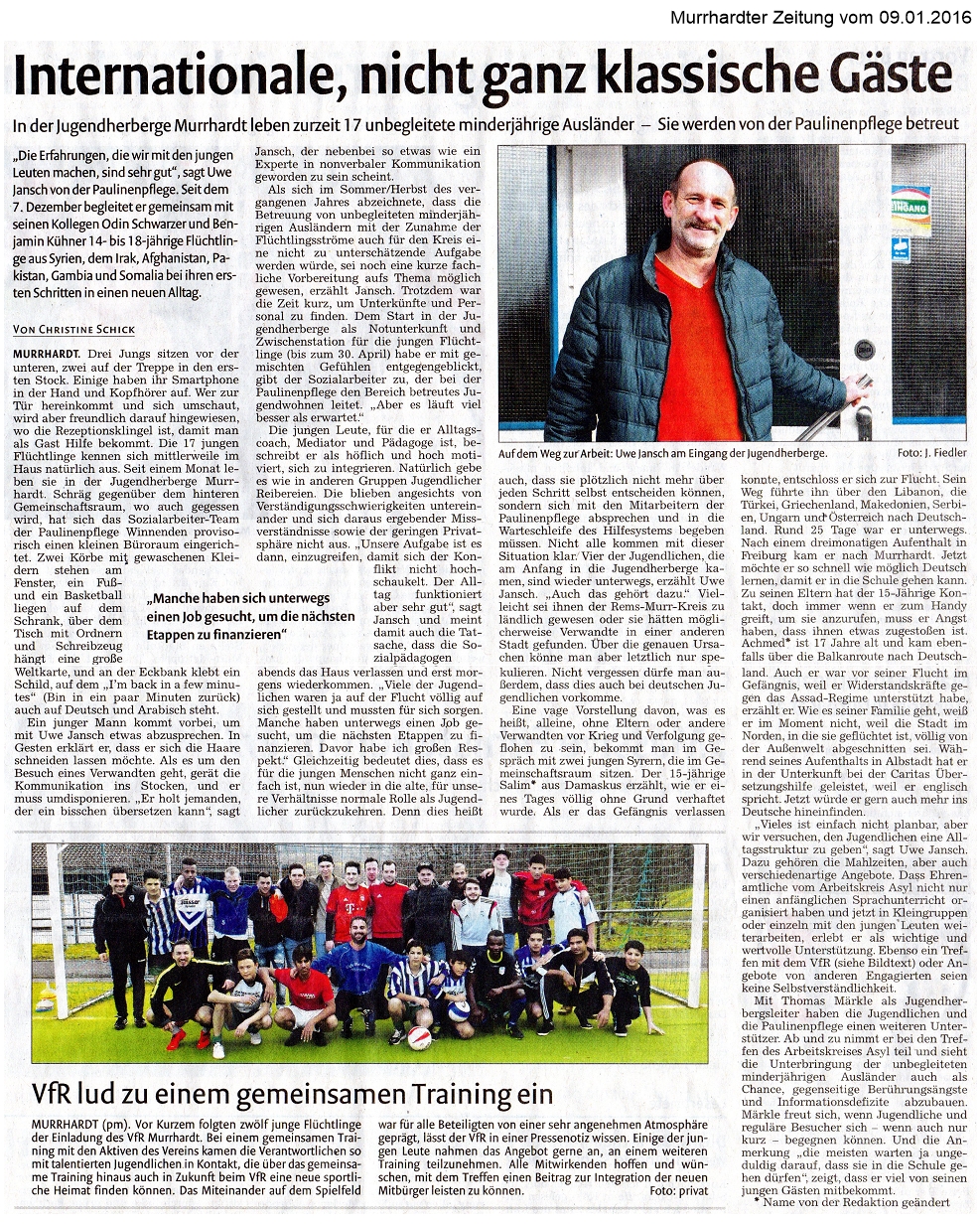 09. Januar 2016 - Murrhardter Zeitung - Paulinenpflege - Internationale, nicht ganz klassische Gäste
