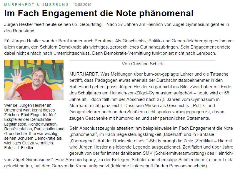 13. August 2015 - Murrhardter Zeitung - Im Fach Engagement die Note phänomenal