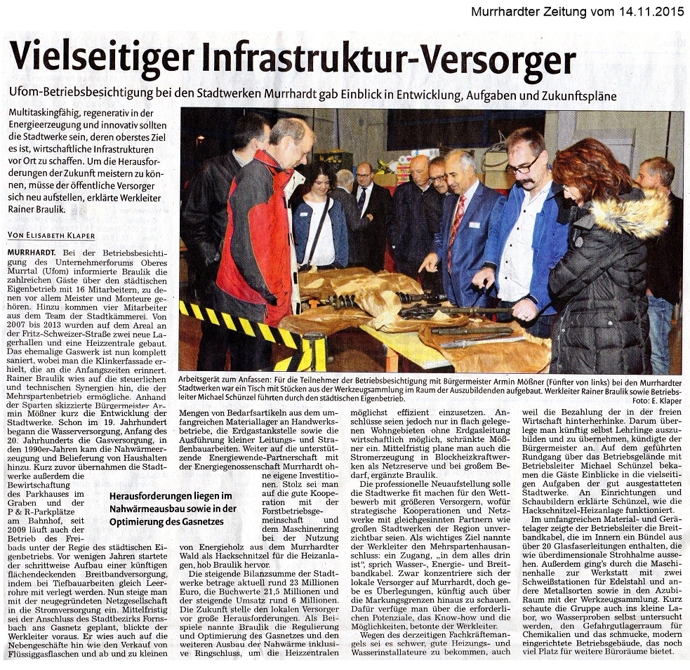 14. November 2015 - Murrhardter Zeitung - Murrhardt/UFOM - Vielseitiger Infrastruktur-Versorger