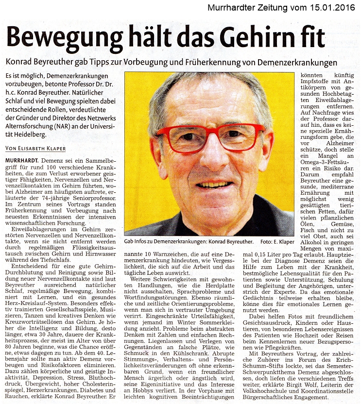 15. Januar 2016 - Murrhardter Zeitung - VHS/Erich Schumm Stiftung - Bewegung hält das Gehirn fit