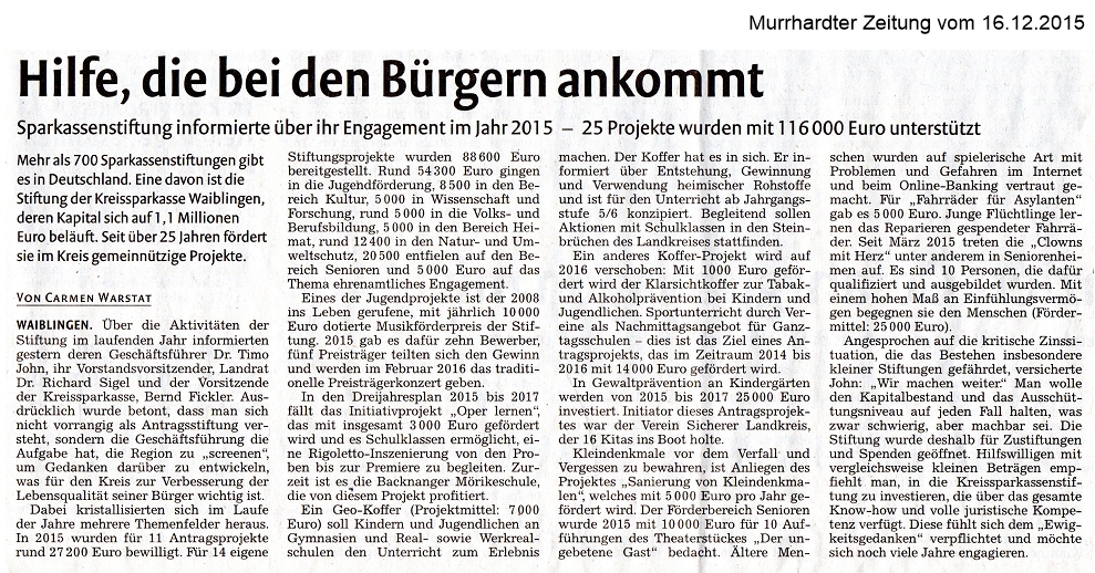 16. Dezember 2015 - Kreissparkasse - Hilfe, die bei den Bürgern ankommt