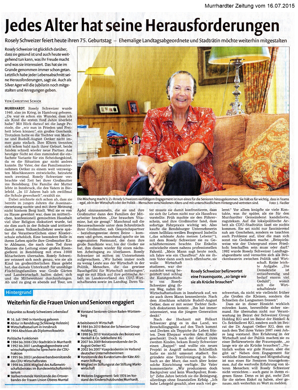 16. Juli 2015 - Murrhardter Zeitung - Jedes Alter hat seine Herausforderungen