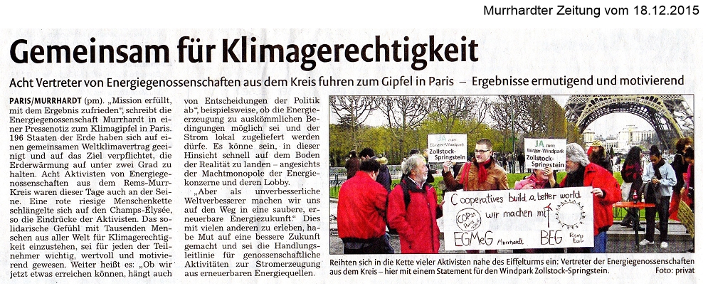 18. Dezember 2015 - Murrhardter Zeitung - EGM - Gemeinsam für Klimagerechtigkeit