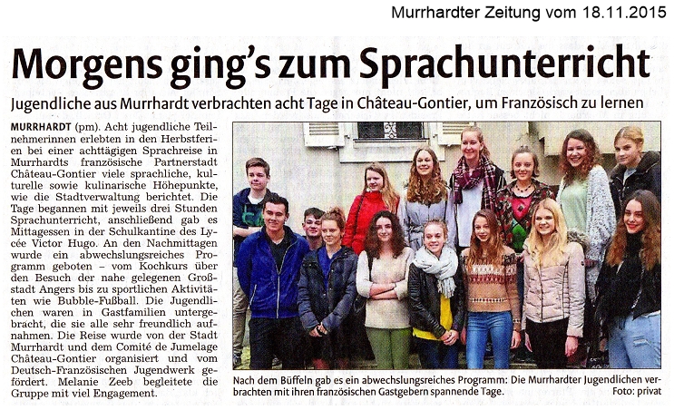 18. November 2015 - Murrhardter Zeitung - Stadt Murrhardt - Morgens ging´s zum Sprachunterricht