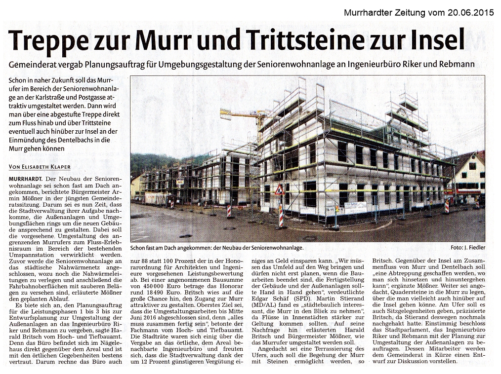 20. Juni 2015 - Murrhardter Zeitung - Treppe zur Murr und Trittsteine zur Insel