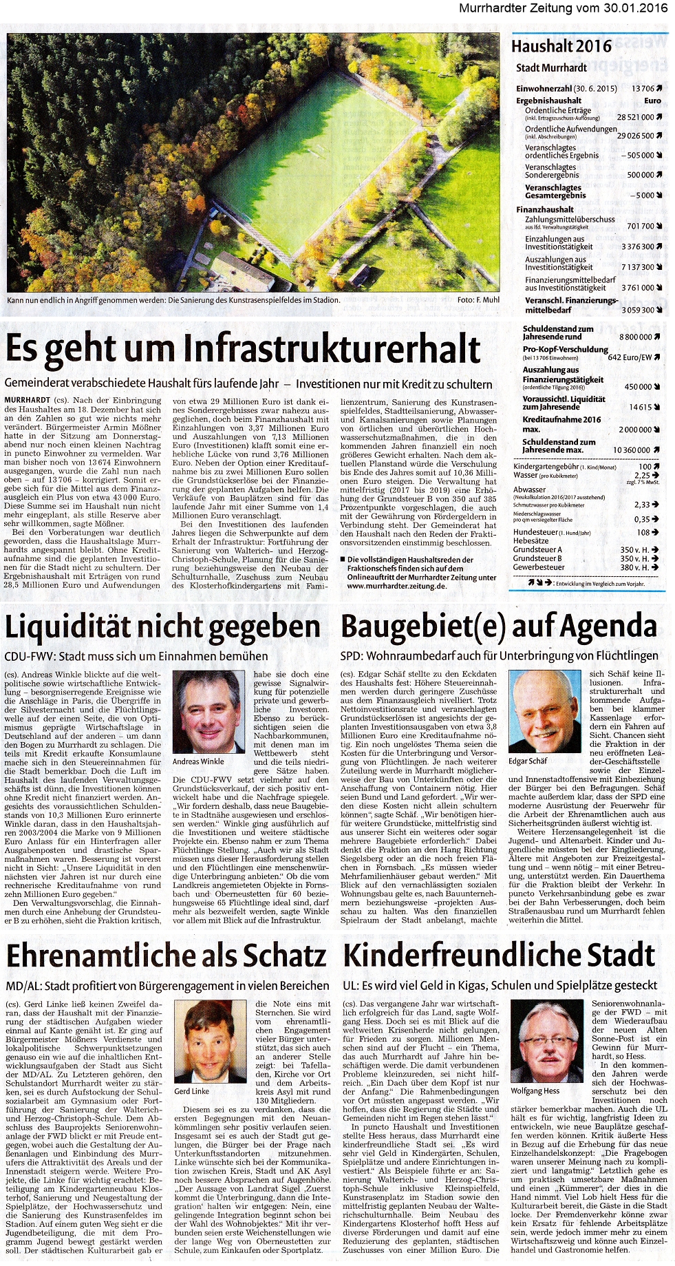 30. Januar 2016 - Murrhardter Zeitung - Stadt Murrhardt - Es geht um Infrastrukturerhalt
