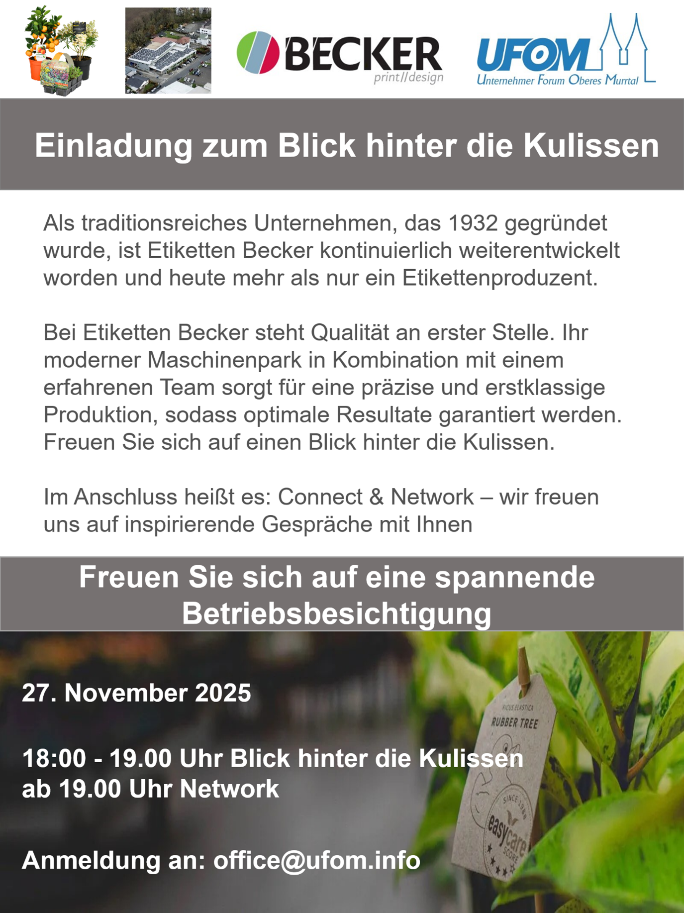 UFOM-Mitglied kennenlernen "Betriebsbesichtigung Etiketten Becker"
